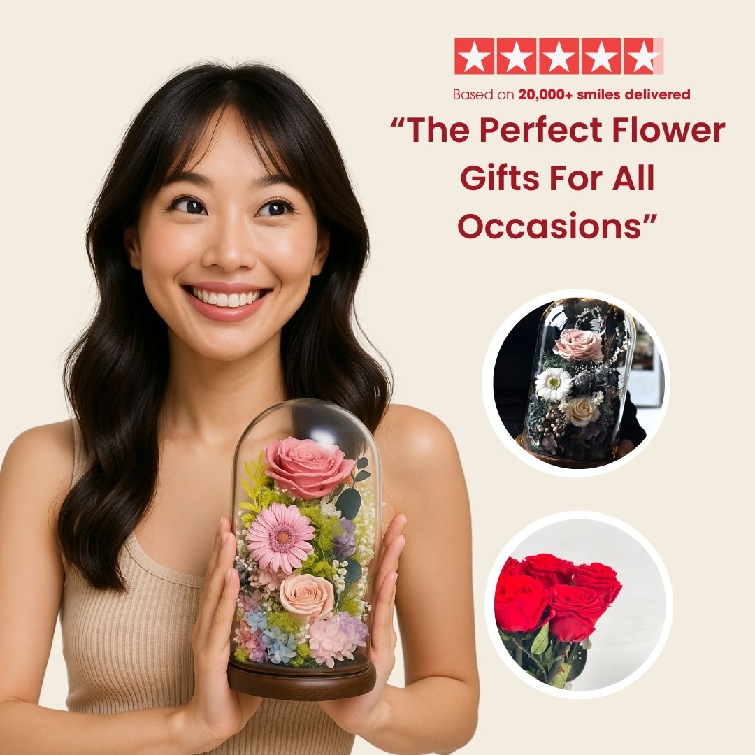 Product Summary Preserved flower bouquet Size: 30x40cm Deluxe / 35x45cm Grand Our Preserved Flowers Unlike fresh flowers, Ana Hana preserved flowers can last up to a year or more in a cool and dry environment. Try not to place your flowers in humid environments, such...- From Rp 1.239.000,00
