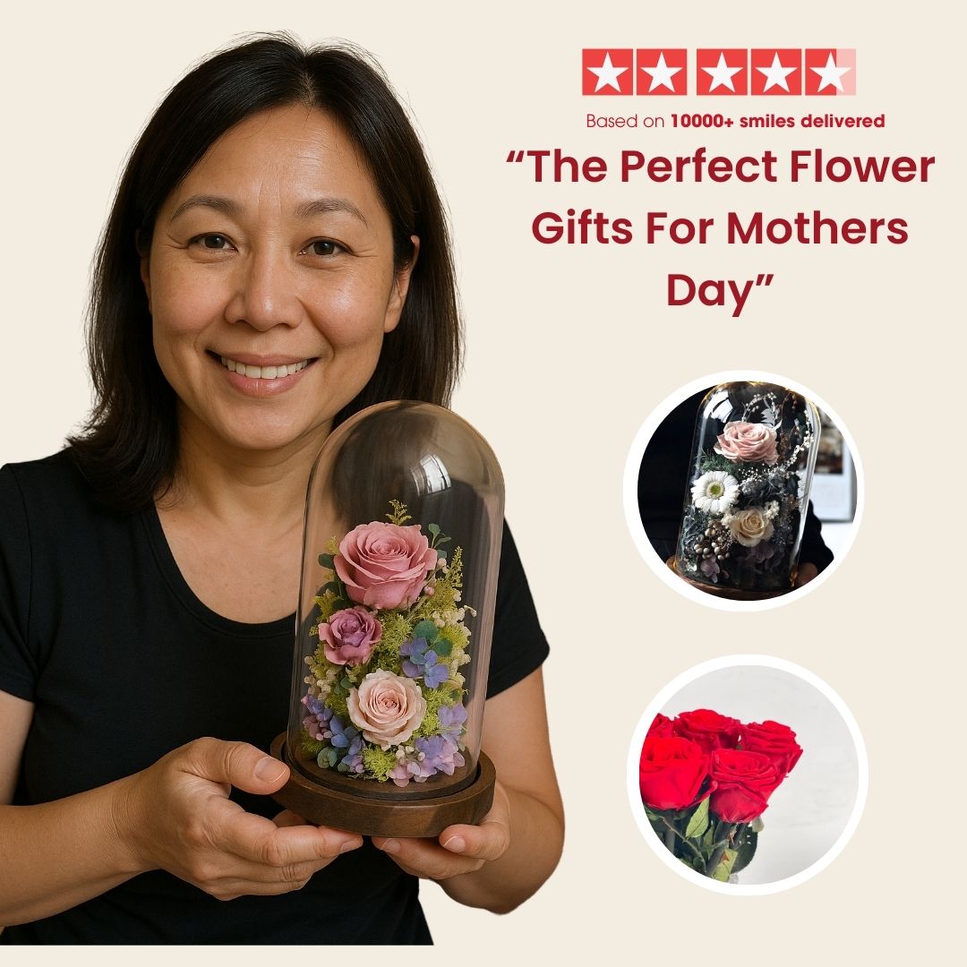Carnation Blowball preserved flower dome features a single large carnation bloom and premium english roses accompanied by other flowers and foliage for a matching colour theme! Each dome is lovingly handcrafted piece by piece and no two are the same. A perfect addition to your loved one’s vanity top...- Rp 1.109.000,00