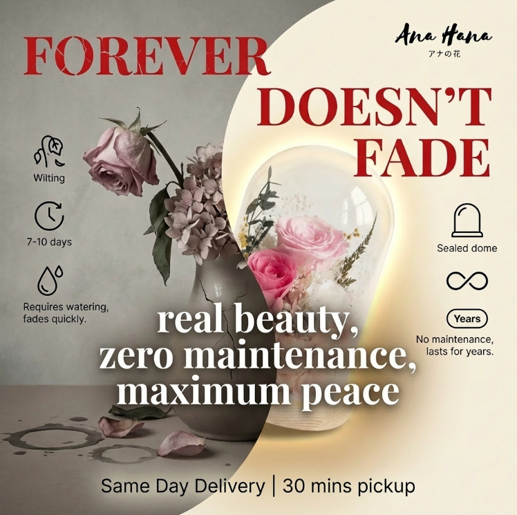 Surprise someone with a flowers that stands the test of time, sparking joy far beyond any special occasion. Flowers are great, the only bad thing is they wilt too quickly in Singapore.